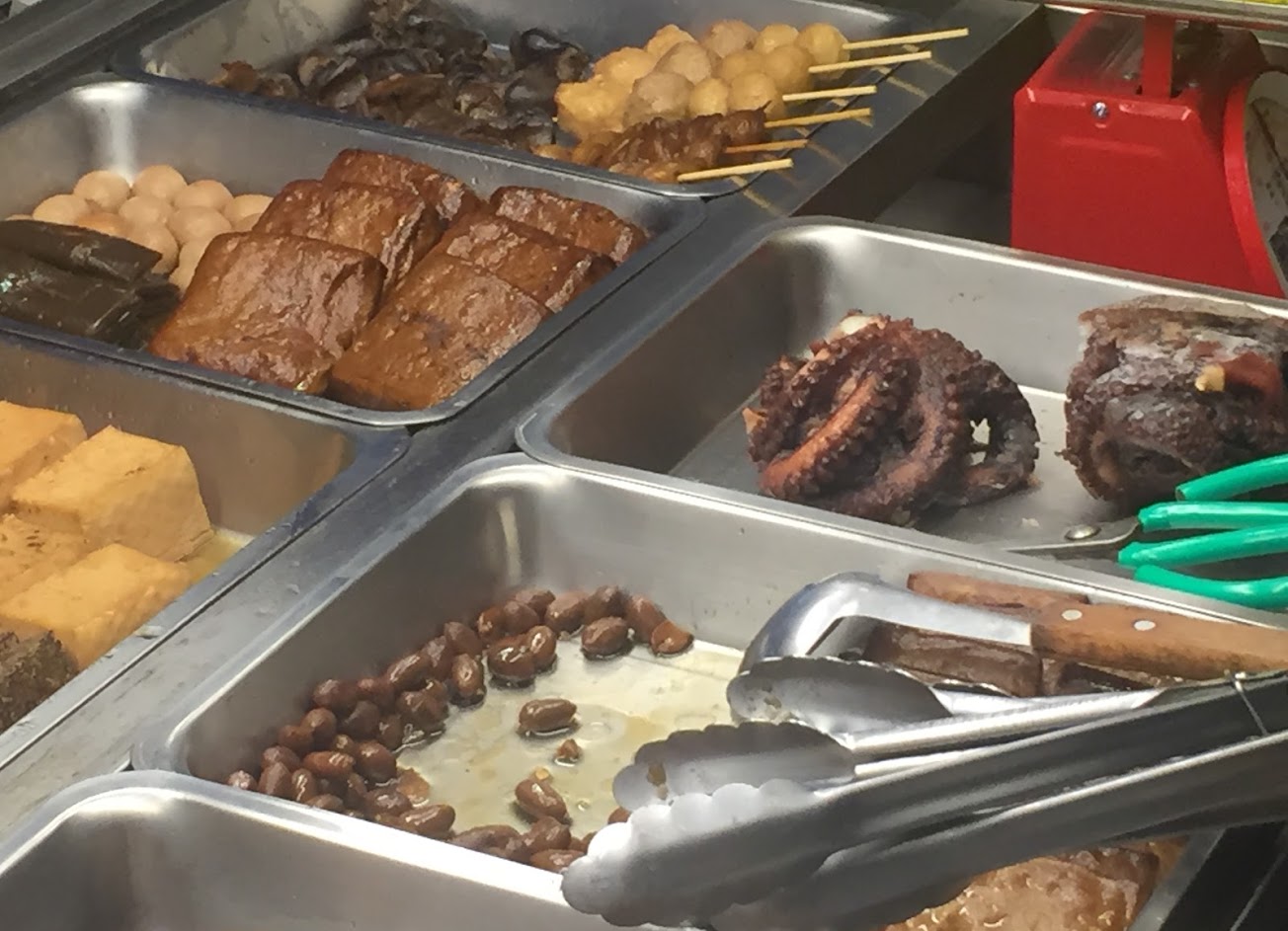 滷章魚 花椰菜 豬皮 甜不辣 海帶。
