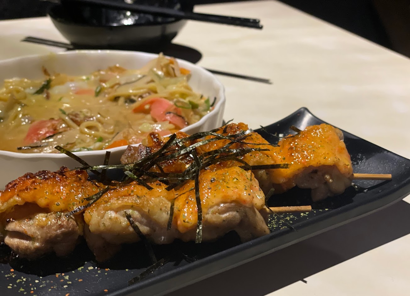 照燒烤雞腿肉串好吃,鹽蔥雞腿肉串更推。日式烤麻糬不甜膩,但剛上桌需注意內部溫度,避免燙口。
