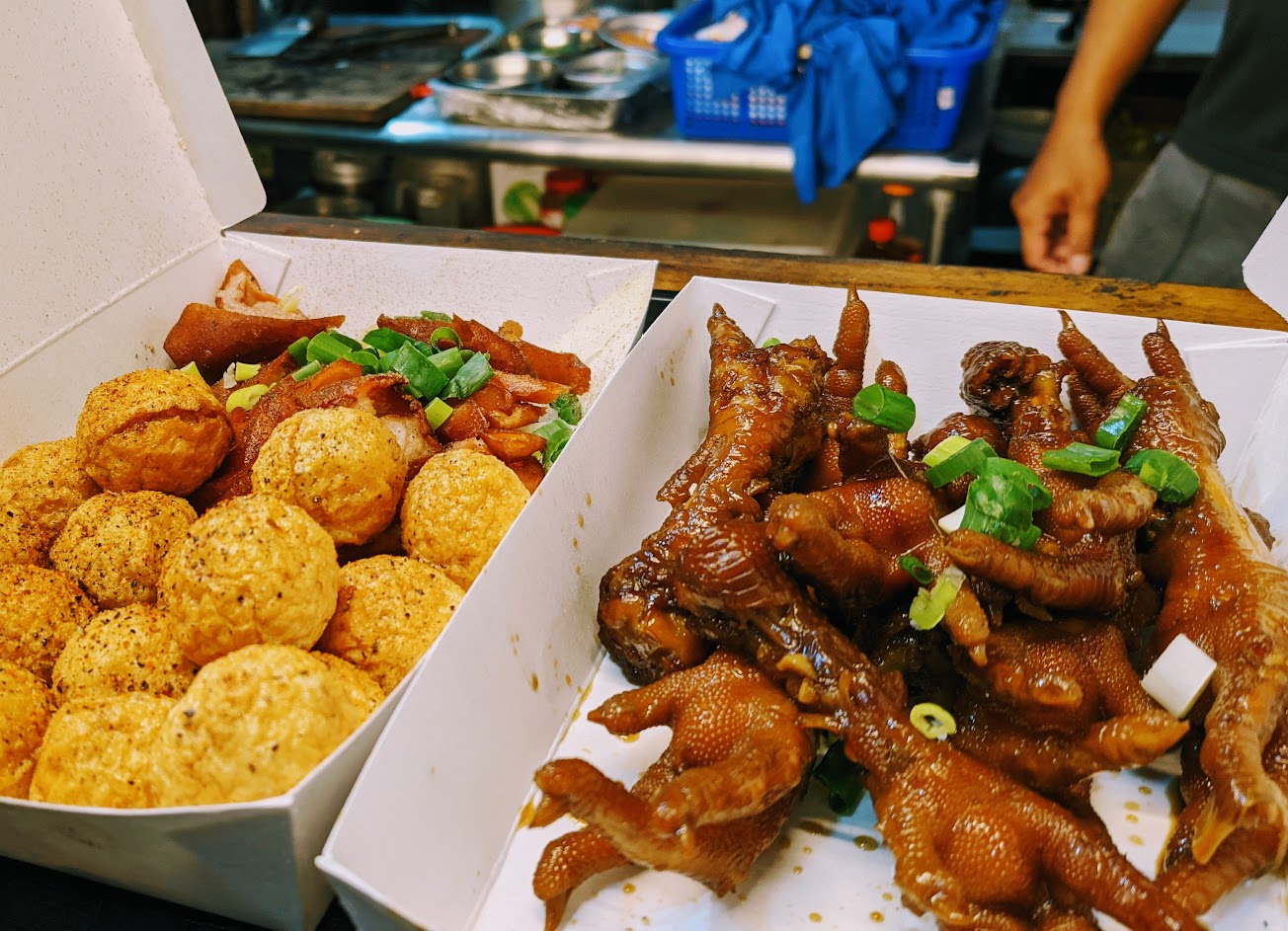 看我們吃的不多 老闆們還把自製滷雞腳給裝了一盒給我們 色香味俱全之,令人食指大動
