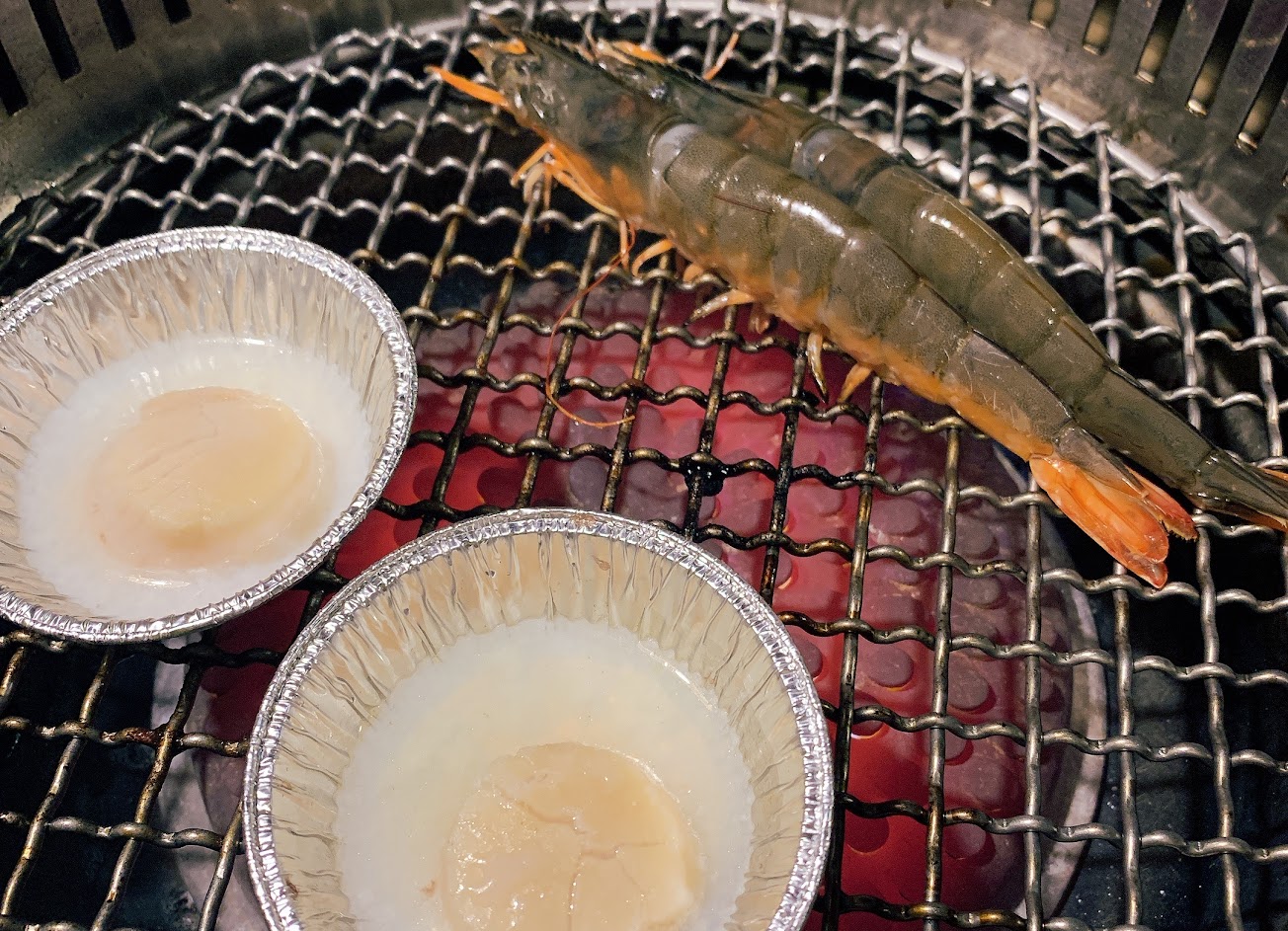 食材很新鮮,可惜要自己烤,手拙的我們,烤到剩2/3才掌握技巧,值得推薦是有一大壺的香菇雞湯,真的好喝