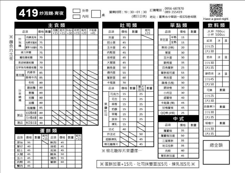 2024最新在地推薦餐廳的菜單_419宵夜的菜單、圖片