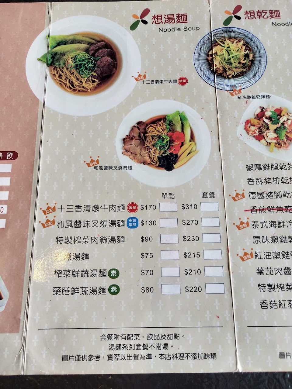 有點麵跟飯,只有一份想加套餐的時候,套餐要畫在飯的地方,不然會損失套餐的湯