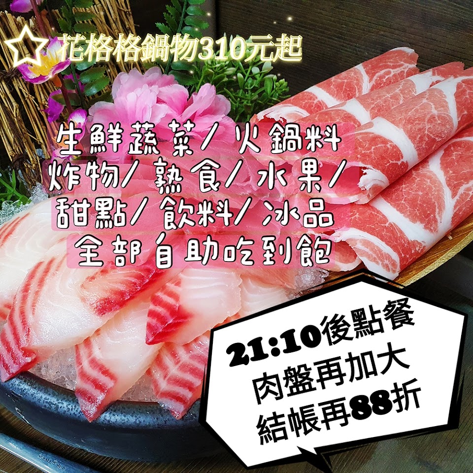 最低消費290元的自助式吃到飽火鍋店,提供火鍋料,冰品,甜點及水果等。