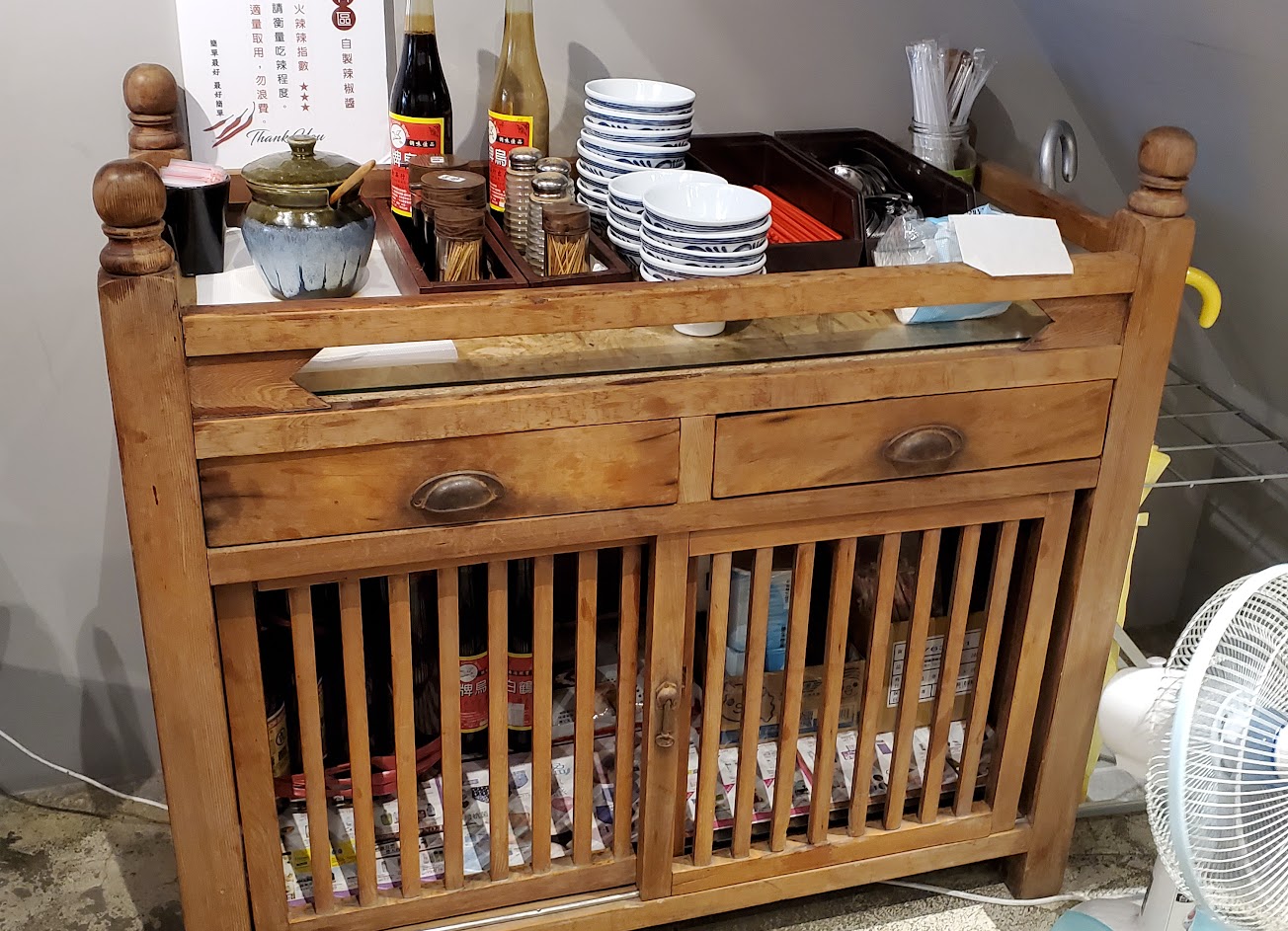 在市區的麵攤,感覺有包裝過的!整體走個懷舊風。東西還不錯吃,但價位偏高,位置不多需要排隊一下,進去才知道有二樓位置,但卻沒開放。可能上樓樓梯比較舊不好走的關係。也有兒童座椅,但位置的設計是圓桌,人數不夠多可能需要併桌。沒有東西吃或是其他店要排隊這家不用排可以吃一下。