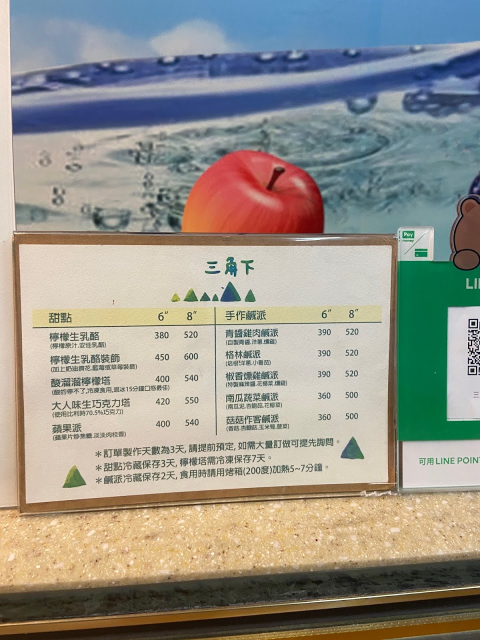 這裡的派很好吃,我最喜歡是檸檬乳酪塔,檸檬塔是超人氣人氣商品,巧克力是大人口味,有點苦不會太甜,鹹的老闆現烤給你,咬起來酥脆好吃。