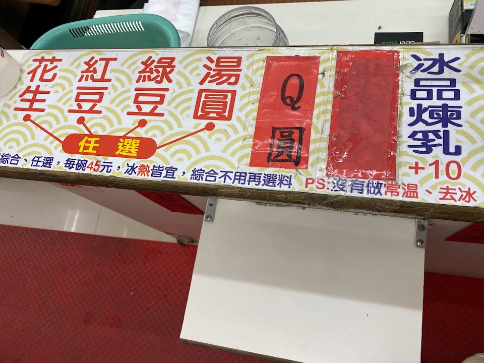 口味普通 不夠甜 湯圓與脆圓遇到剉冰後變得硬 其他料也不夠甜 有空調的空間給三顆星