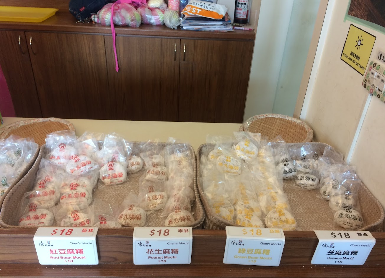 現點現包,不是先包好放在櫃臺上喔! 結帳區的隔壁就是廚房,看得到裡面在包麻糬的狀況,讚!