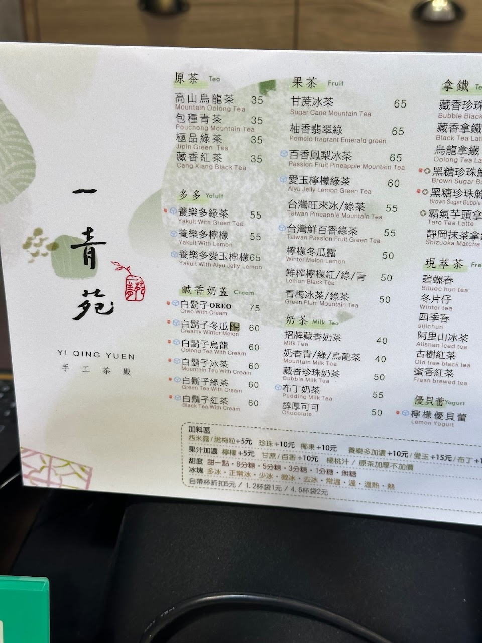 2024最新在地推薦餐廳的菜單_一青苑手工茶殿 台東中華店的菜單、圖片