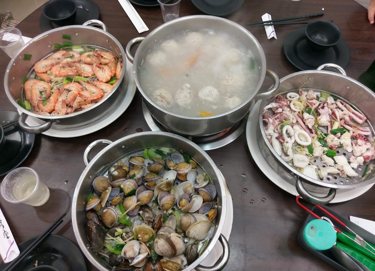 這一家海鮮餐廳最特別的是,用一個鍋底加高湯,上面再放上五至七、八層的海鮮食材,透過鍋底最下層的高湯鍋,加熱所產生的蒸氣,來蒸煮每一曾鍋裡的海鮮食材;每一鍋的海鮮都不一樣,而且都是用新鮮活跳跳的蝦子、貝類、螃蟹、龍蝦等等,上等食材,味美鮮甜,這些的料理方式源自於在韓國的九層鍋海鮮大餐!