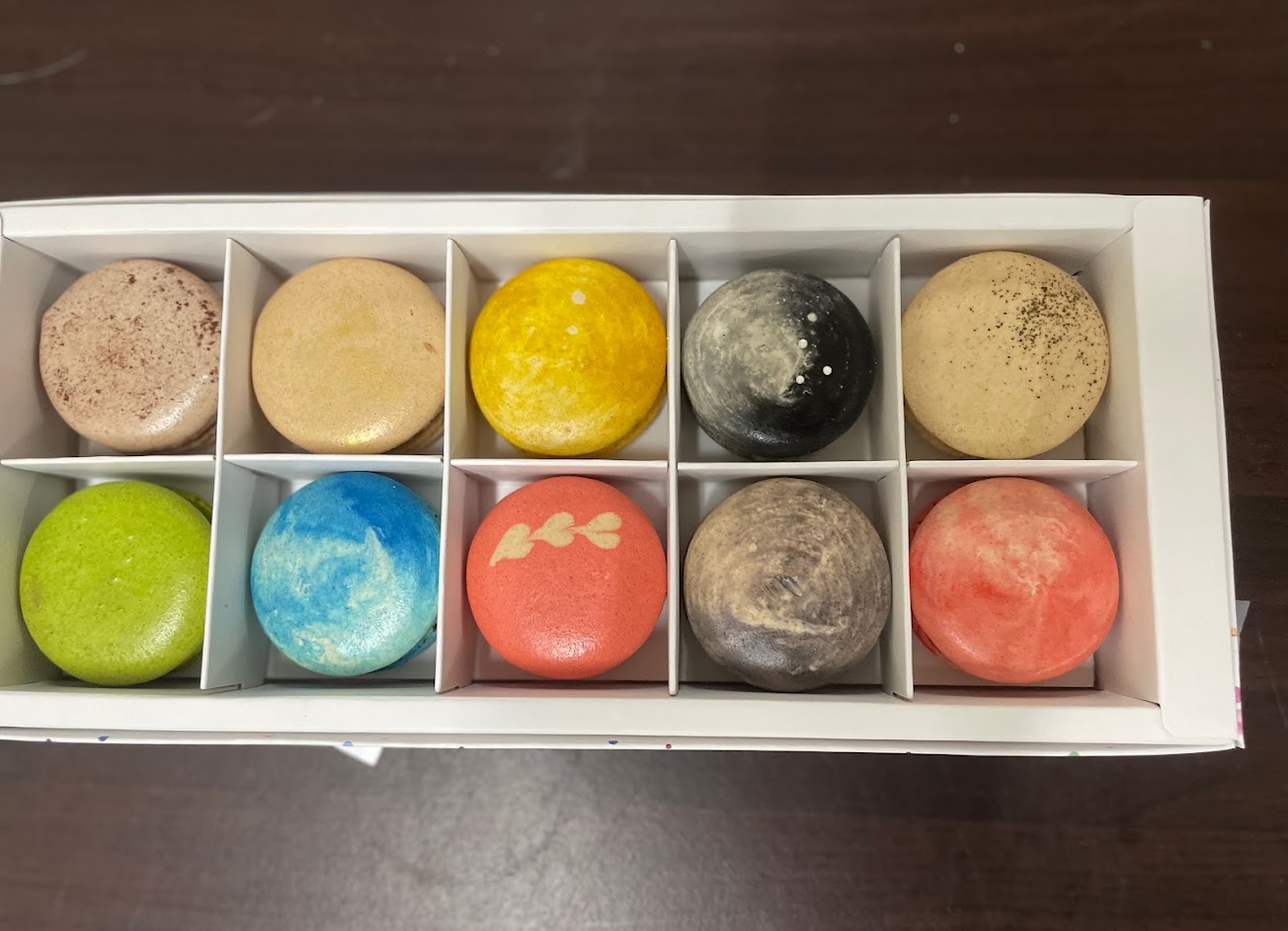 看起來好看外,吃起來更是讚不絕口。我吃的是芒果還有紅烏龍的馬卡龍。芒果味道濃郁,很甜,不是那種化學的味道,餅本身紮實,一口咬下香氣十足。紅烏龍吃起來有一種烘焙的味道,應該是茶經過烘焙的味道,真的好吃,很特別。