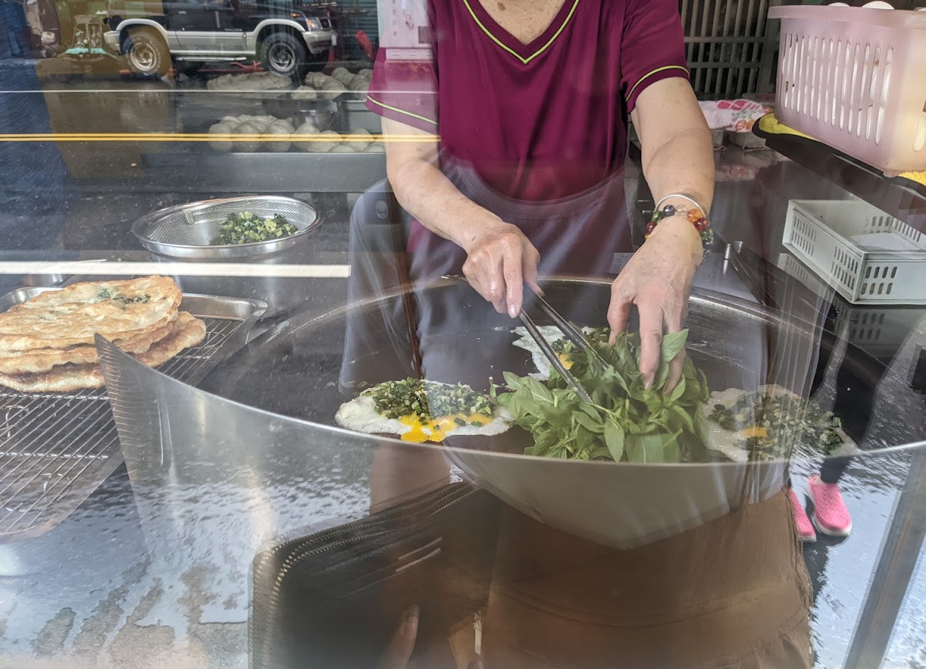 第一次吃 在地人推薦 真的很好吃 跟平常吃的都不一樣 蔥油餅軟軟嫩嫩 放蔥和九層塔超香 蛋還很多汁 超級讚 以後去台東一定必吃
