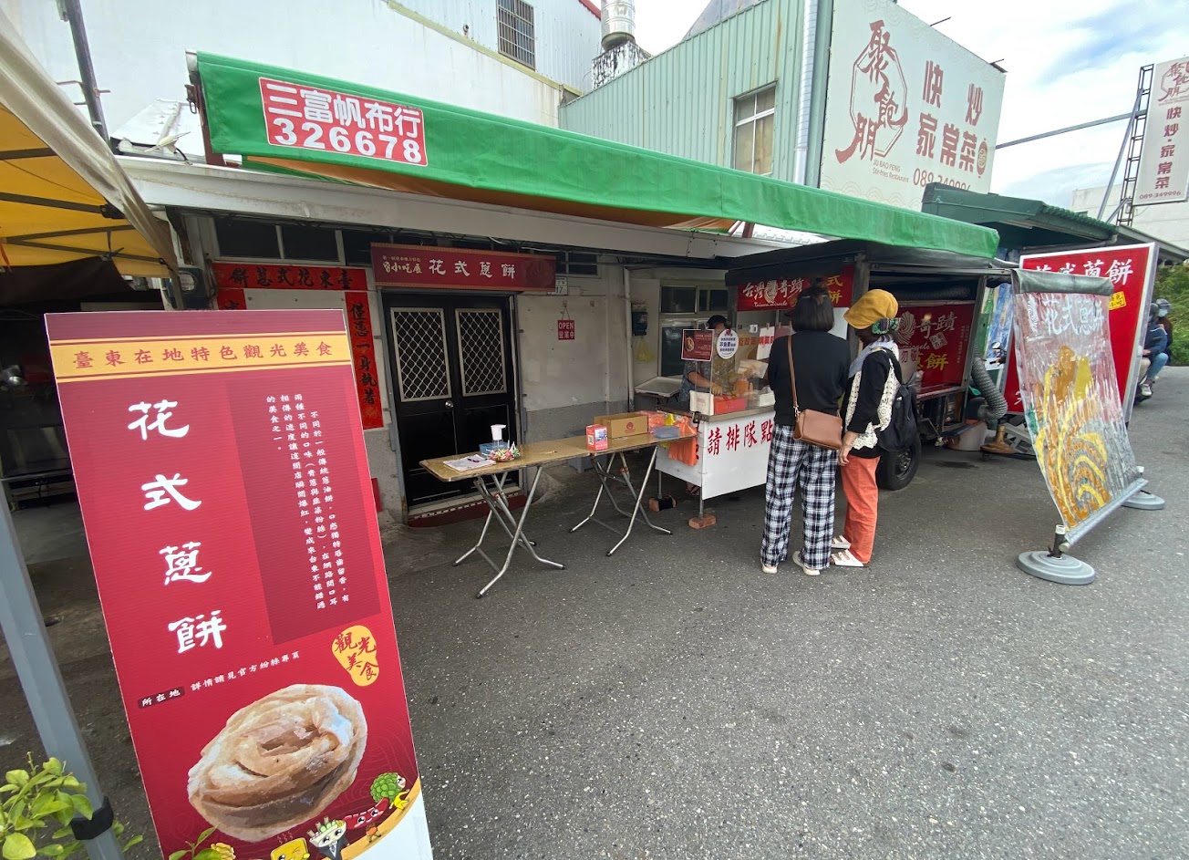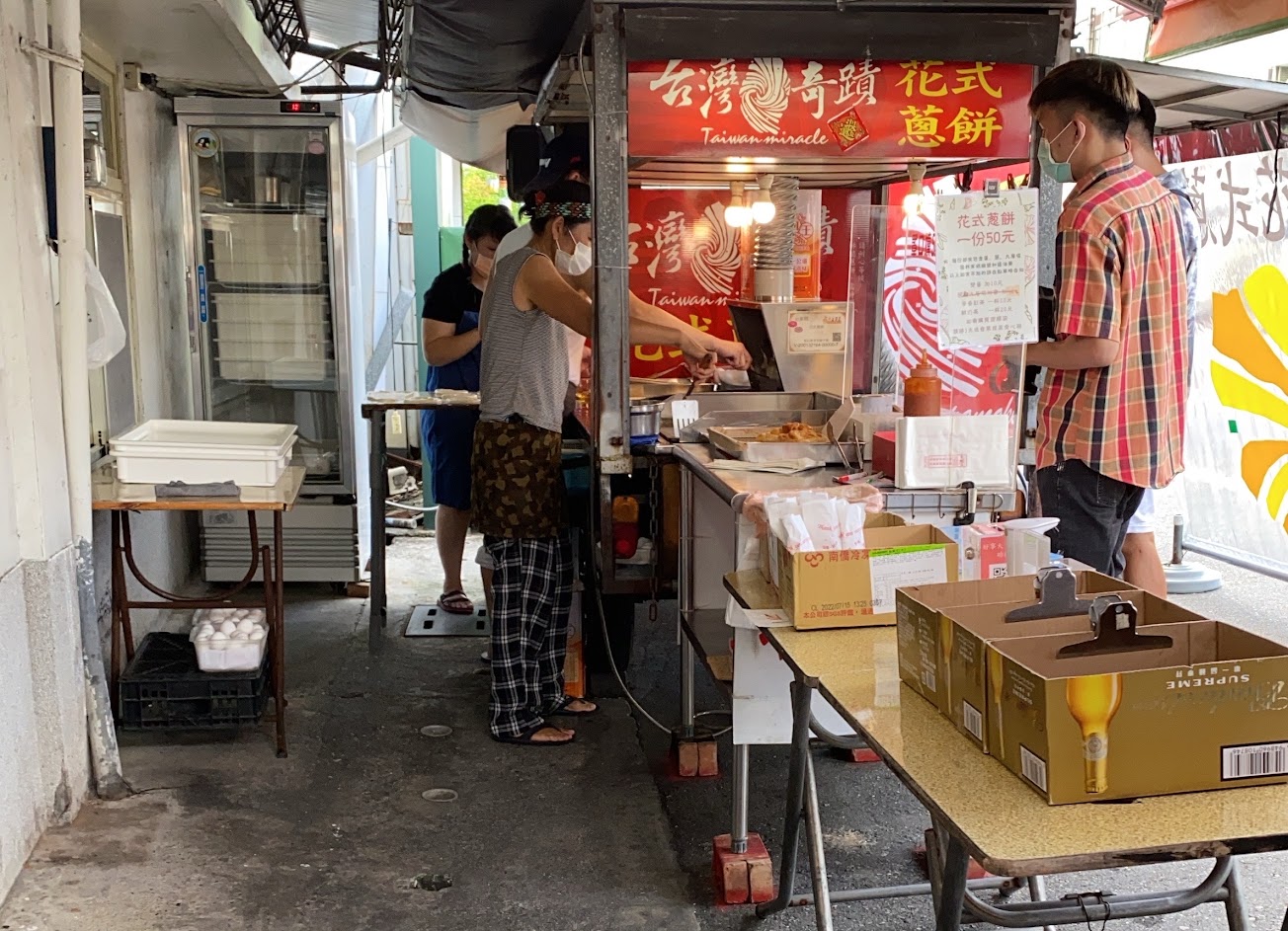 本身很愛蔥油餅類的食物,全台唯一花式在台東,真的很特別!15:00開始排隊點餐,現場人流大約等15-20分不等,一份蔥餅都有包含蛋跟九層塔還有蔥,如果不要要先說,還有賣飲料,紅茶鮮奶茶,夏天很熱排隊真的建議開車來⋯⋯會給你號碼牌,值得來一試的花式蔥餅!
