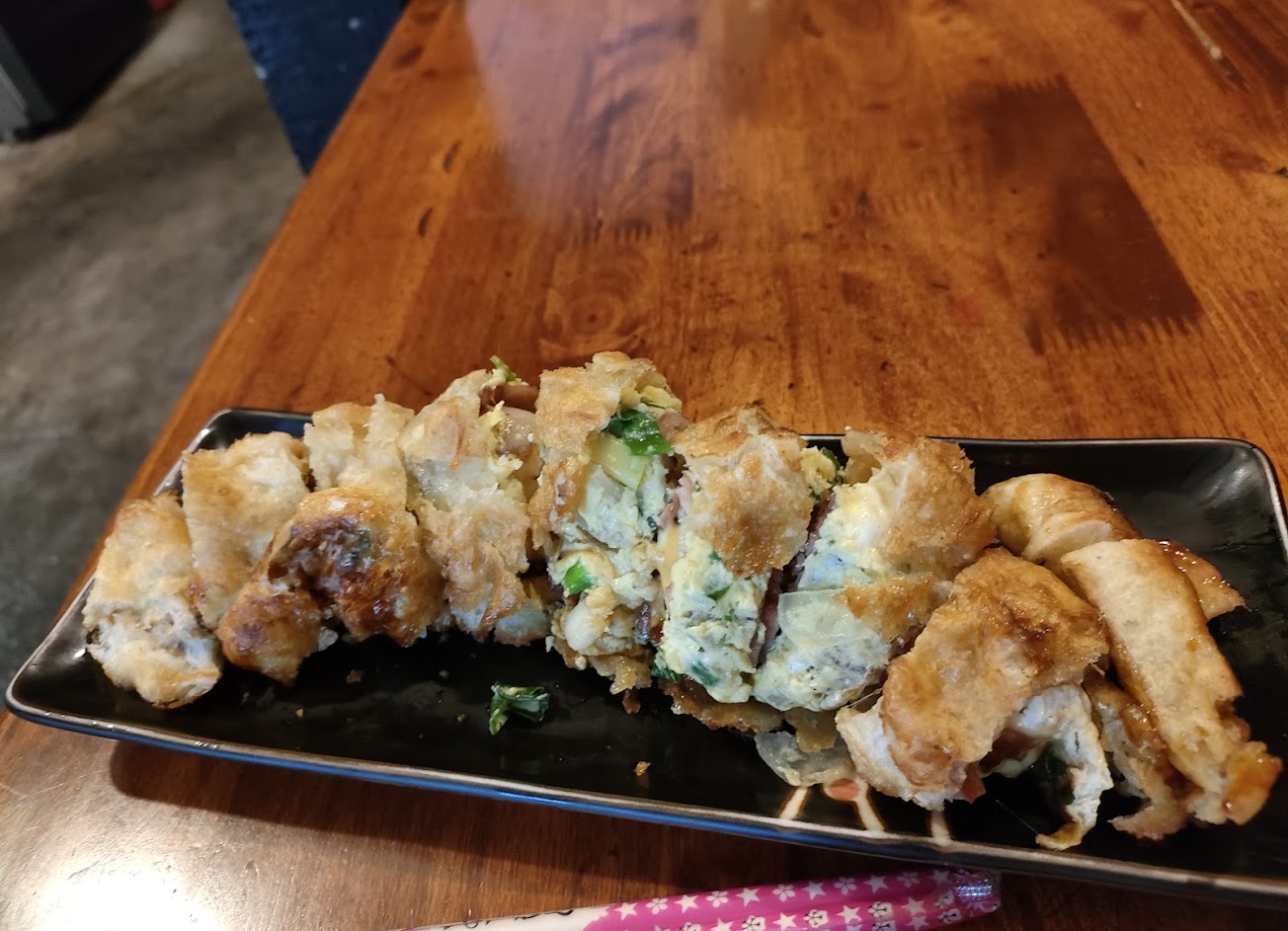 第一次吃到如同早餐店般可以加超多料的蔥油餅,為了不遺憾,點了綜合和起司培根,老闆娘動作很快,也喜歡跟客人聊人,要不是因疫情外帶,可以從老闆娘那挖到很多台東的私房玩法哦~
