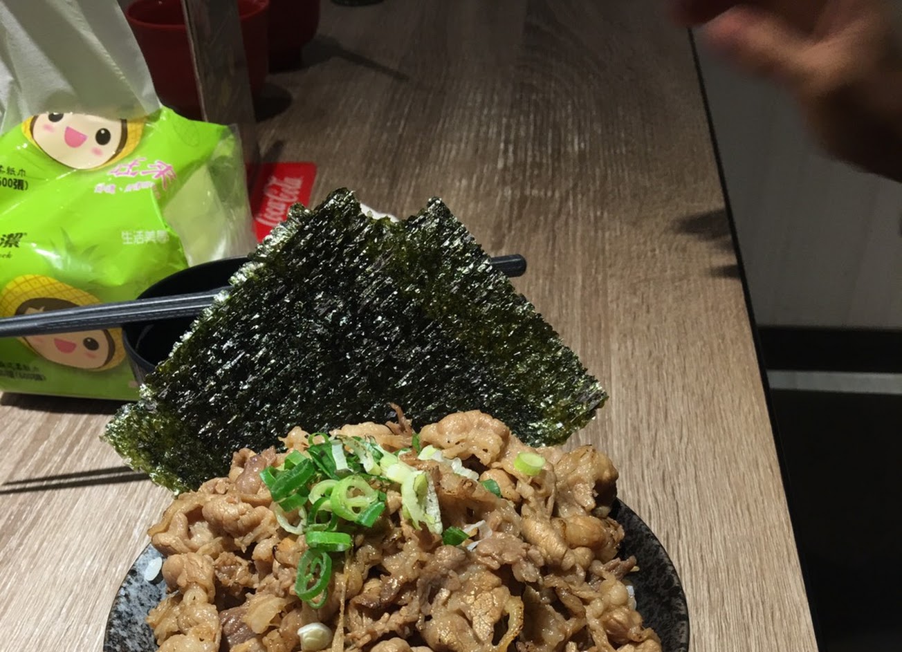 牛肉丼飯好吃,圖片是雞腿排丼飯,朋友說還好