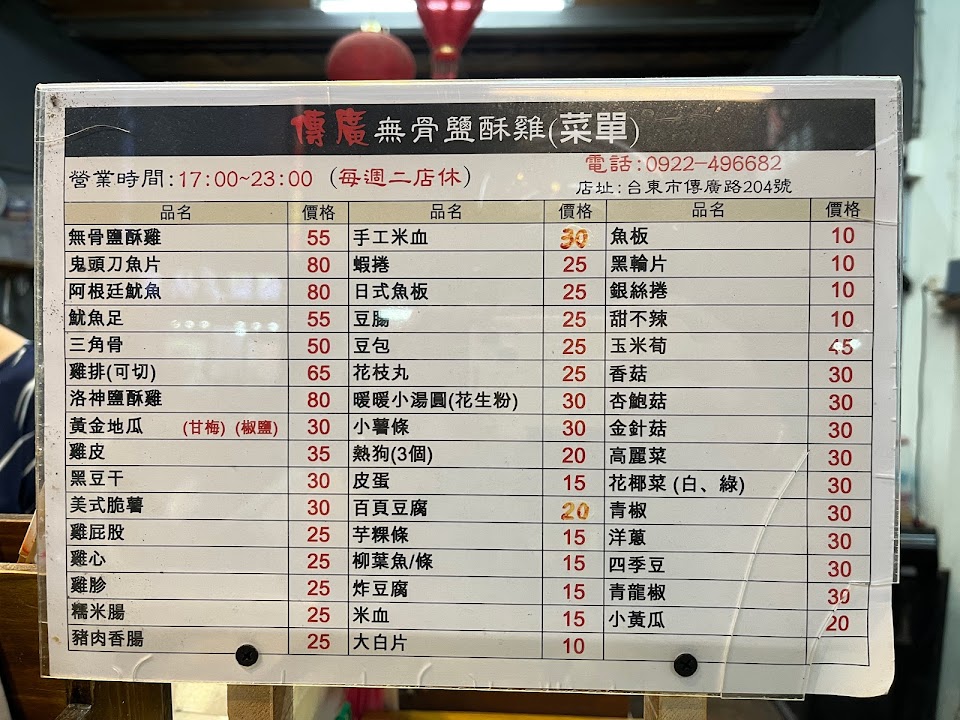 2024最新在地推薦餐廳的菜單_台東傳廣無骨鹽酥雞的菜單、圖片