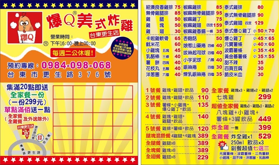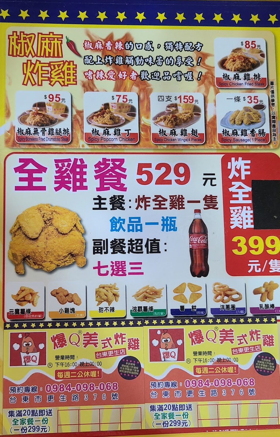 2024最新在地推薦餐廳的菜單_爆Q美式炸雞-(台東更生店)的菜單、圖片