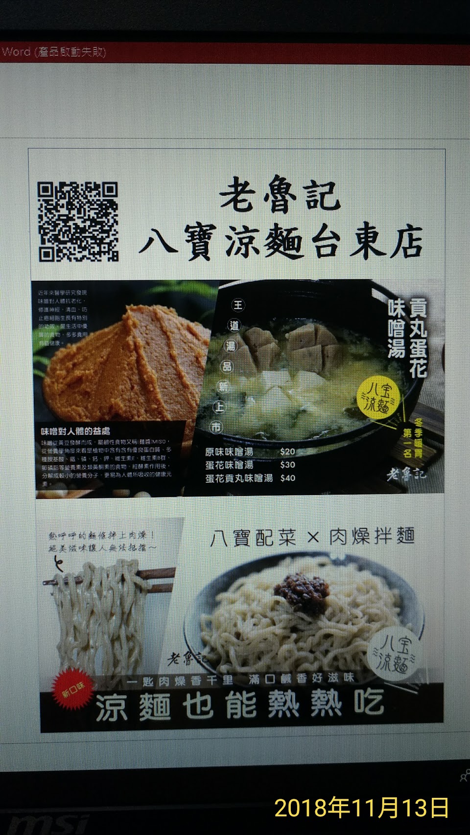 2024最新在地推薦餐廳的菜單_魯八宝涼麵台東店的菜單、圖片