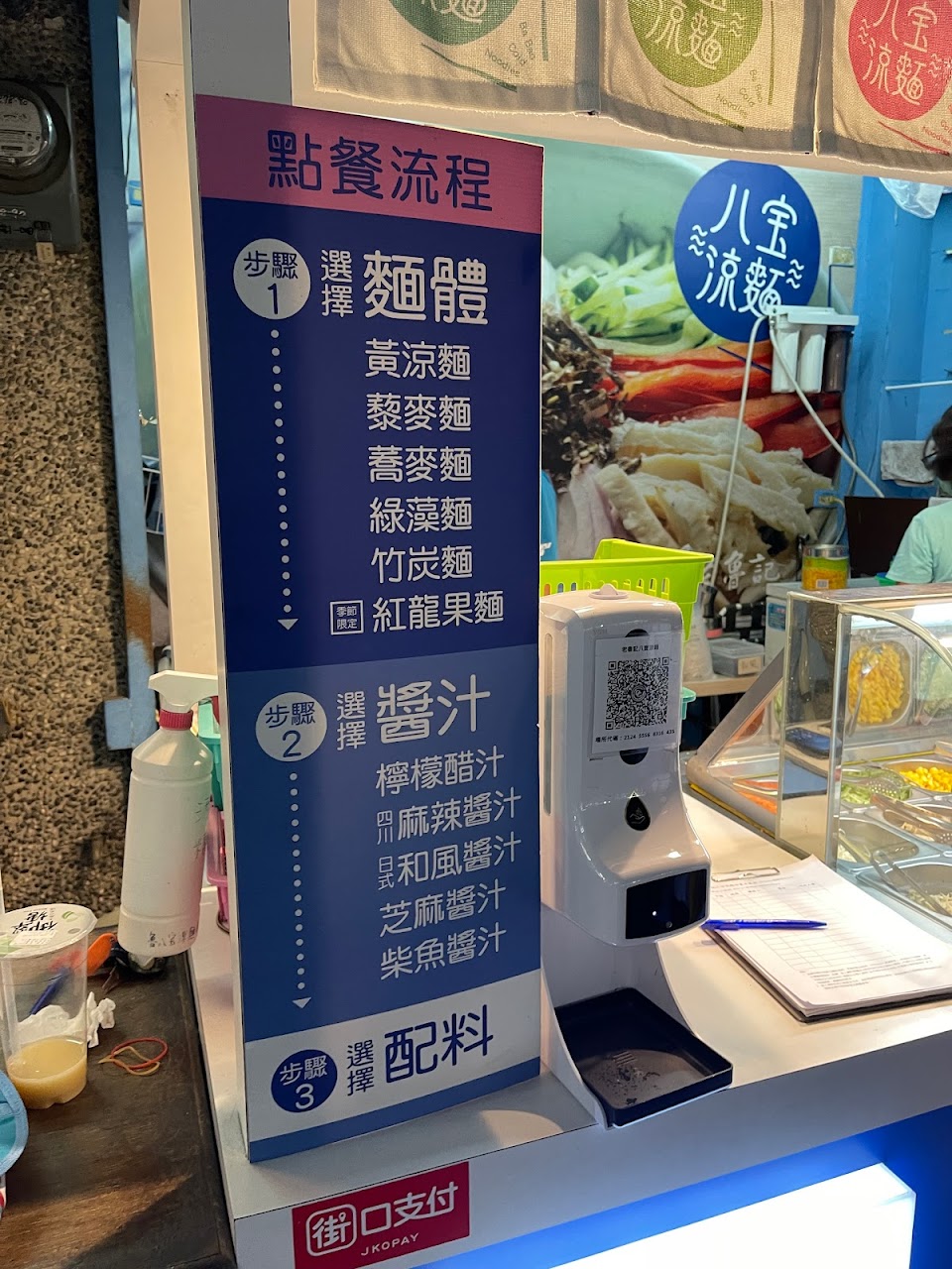 買了三種麵體(藜麥、蕎麥、紅龍果),選了三種醬汁(和風、麻辣、檸檬醋),各選了8種配菜~怎麼配都讚不絕口?