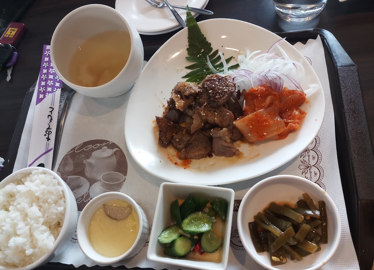 韓式泡菜吃不習慣,照燒雞腿偏乾,吃不出照燒的味道。