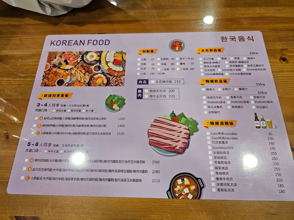 蠻好吃的韓式炒烤肉飯+牛肉+韓式炸雞,價格合理,還有飲料可以點汽水,不過重點來了廁所是韓文的看不懂欸及吃炸雞的話有點硬梆梆的,希望要改善一點。