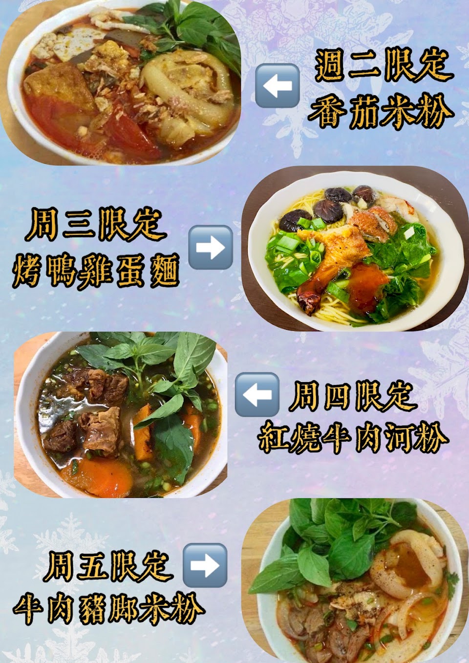 老闆娘態度親切,餐點也有不同的風格跟限定,多了一些不同口味的新菜色,突破以往進入越菜美食餐廳只吃湯麵的迷思,日限定的菜色也頗有自己的特色,個人推禮拜四限定的紅燒牛肉河粉,跟招牌海鮮河粉!非常好吃!