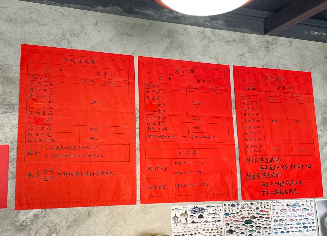 主要分成豆花、薏仁、刨冰三類 豆花以糖水為主也可以加價換成豆漿 豆漿有豆香味很足豆花口感綿密滑順