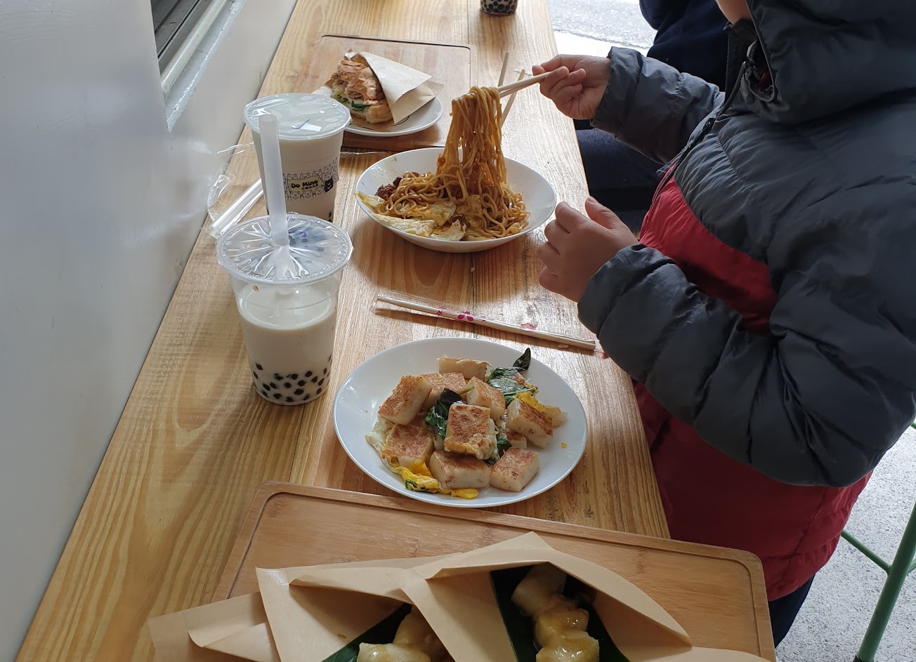 放在口袋名單裡好久了,從台中到台東環島旅行,從花蓮民宿吃完早餐後,特地直奔台東成功鎮光顧DoMine 獨賣美味早餐&下午茶 ,趕在營業結束前到達,老闆跟老闆娘超親切,餐點很美味,炒麵、九層塔蘿蔔糕超香,珍珠很Q好好吃,道地的小米麻糬配上煉乳+炒糖超級搭,我家兩隻挑食的寶貝明明在名宿吃完早餐了,居然還搶食,吃超多,真的覺得超可愛??