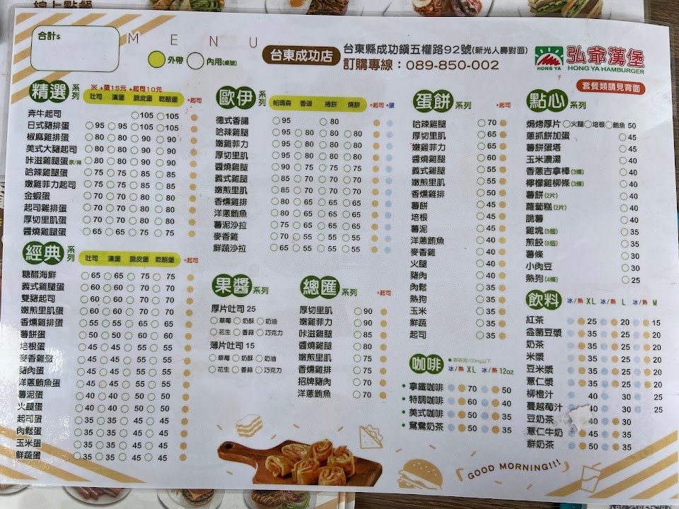 2024最新在地推薦餐廳的菜單_弘爺漢堡-台東成功店的菜單、圖片