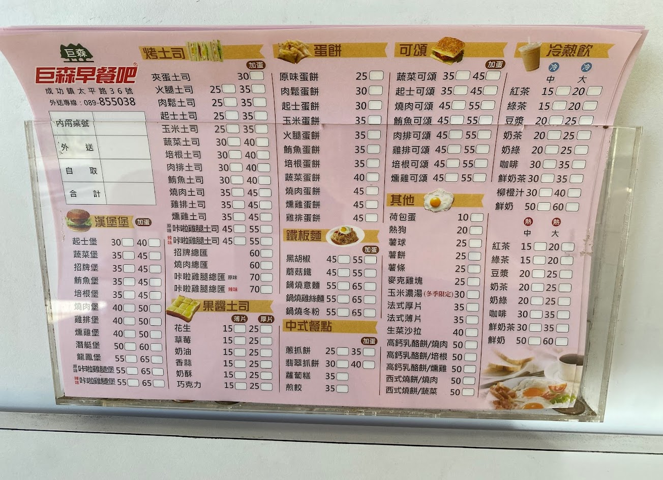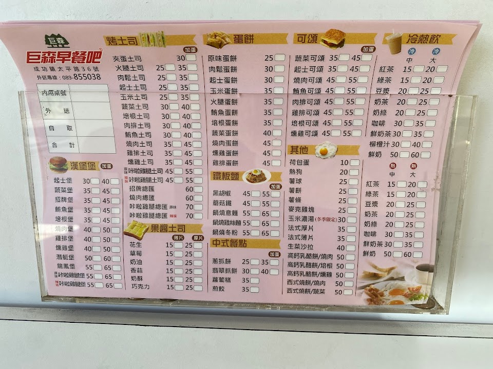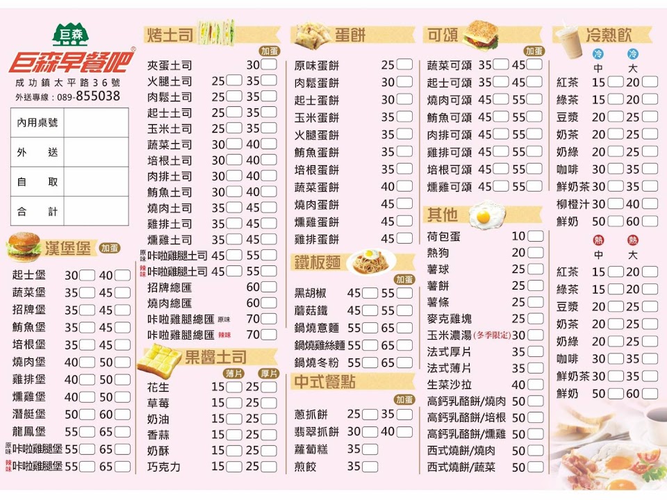 2024最新在地推薦餐廳的菜單_巨森早餐吧 成功店的菜單、圖片