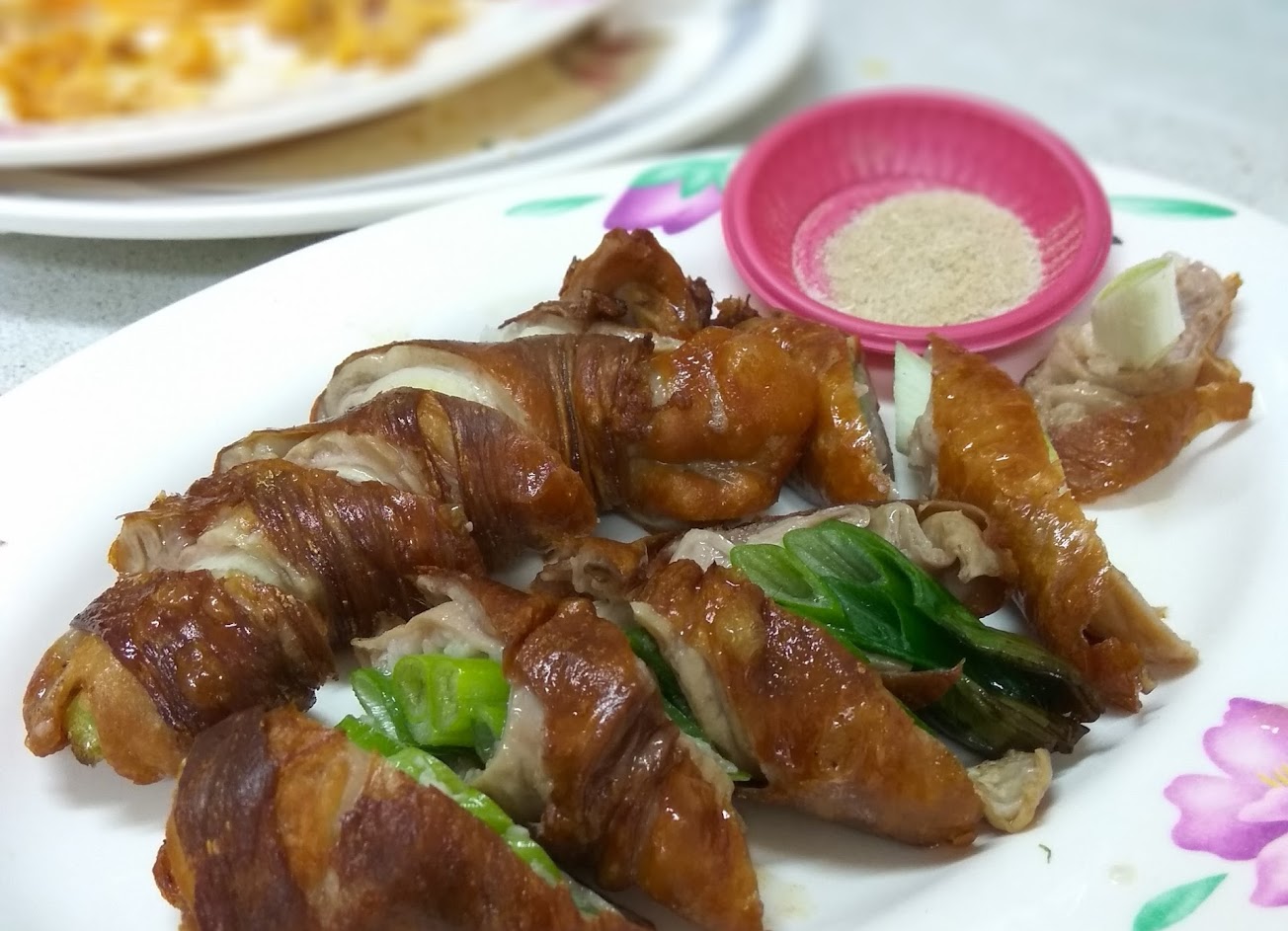 蔥油雞,雞肥油一堆,感覺太鹹。