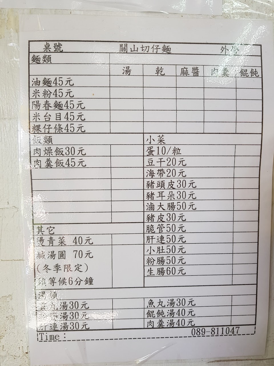 2024最新在地推薦餐廳的菜單_關山切仔麵的菜單、圖片