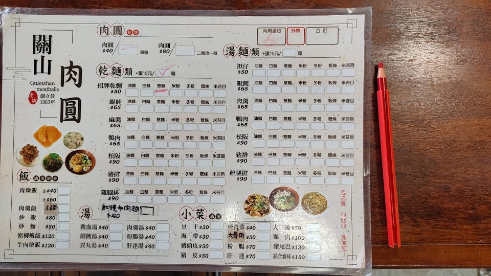 要自己找位子入座,手寫好要點的餐點,交給工作人員並付款,餐點出很快,點了肉圓,炒飯,粉腸湯,味道都不錯,好吃??