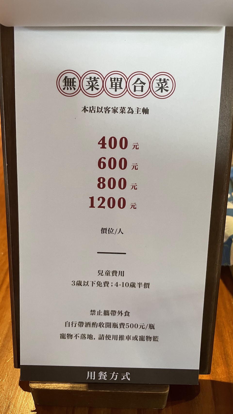 客家菜好吃 算人頭的喔!有$400/$500/$600/$800