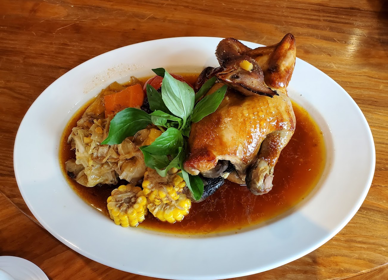 強力推薦來台東一定要吃的餐廳。一定要預訂的燜雞,經過文火慢烤,雞肉可以輕易以手拆撕,皮Q潤而肉質細嫩,那配菜地瓜、芋頭,高麗菜也都柔軟入味,超級驚艷。