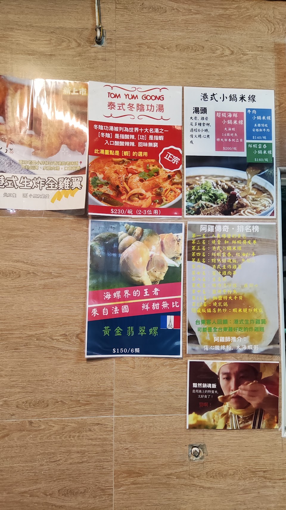2.只有老闆1人(香港人),但好像有送餐協助者(應該是他爸爸)……所以老闆除要當外場送餐者,也需當內場主廚,又要當外場結帳者,因此每等一道菜,通常過10到15分後,如果沒時間或肚子餓或預算不夠,不建議在此店用餐,量極度少,會餓死(例如3支雞翅170元)因此吃完後,還需到附近店買東西吃。