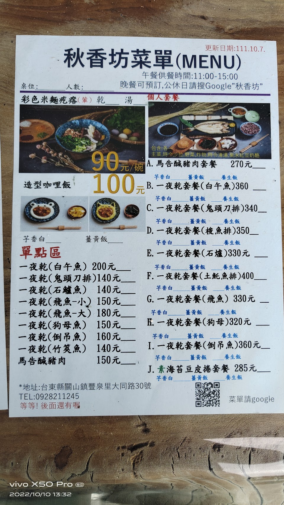 2024最新在地推薦餐廳的菜單_秋香坊-關山平價餐廳的菜單、圖片