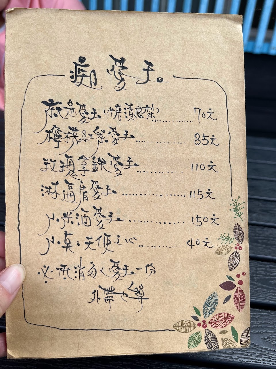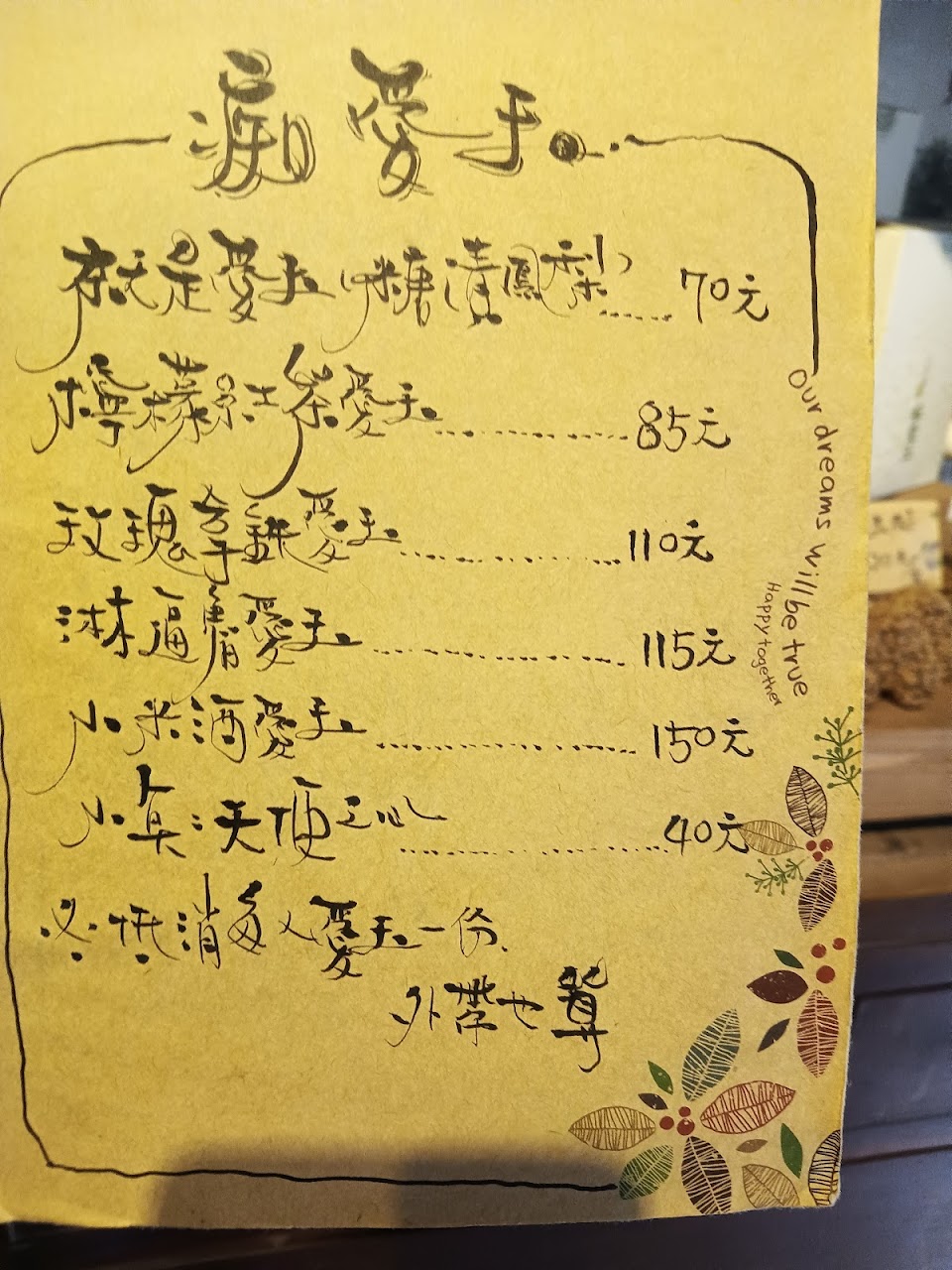 點了檸檬紅茶愛玉、就是愛玉、還有天使之心,店家說初鹿農場牛奶愛玉,孩子說好吃