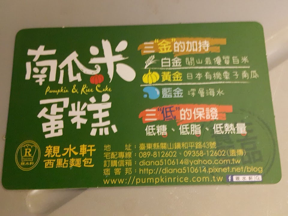 蛋糕有濃濃南瓜香味,堅果味,價格已調漲,6吋270,8吋500,店內有其他口味的麵包,吐司賣相不錯,一條180,最大優點是老闆娘很熱情,詳細介紹台東玩點