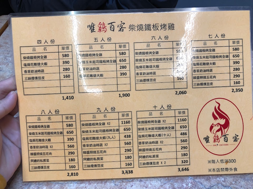 2024最新在地推薦餐廳的菜單_唯雞百客only Chicken柴燒鐵板烤雞的菜單、圖片