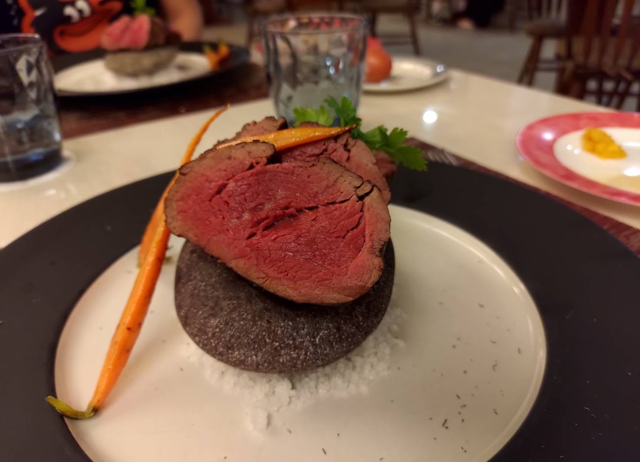 今天的舒肥菲力牛排搭配晚崙西亞做的醬(一種柑橘類,只有這個季節台東才有的水果)