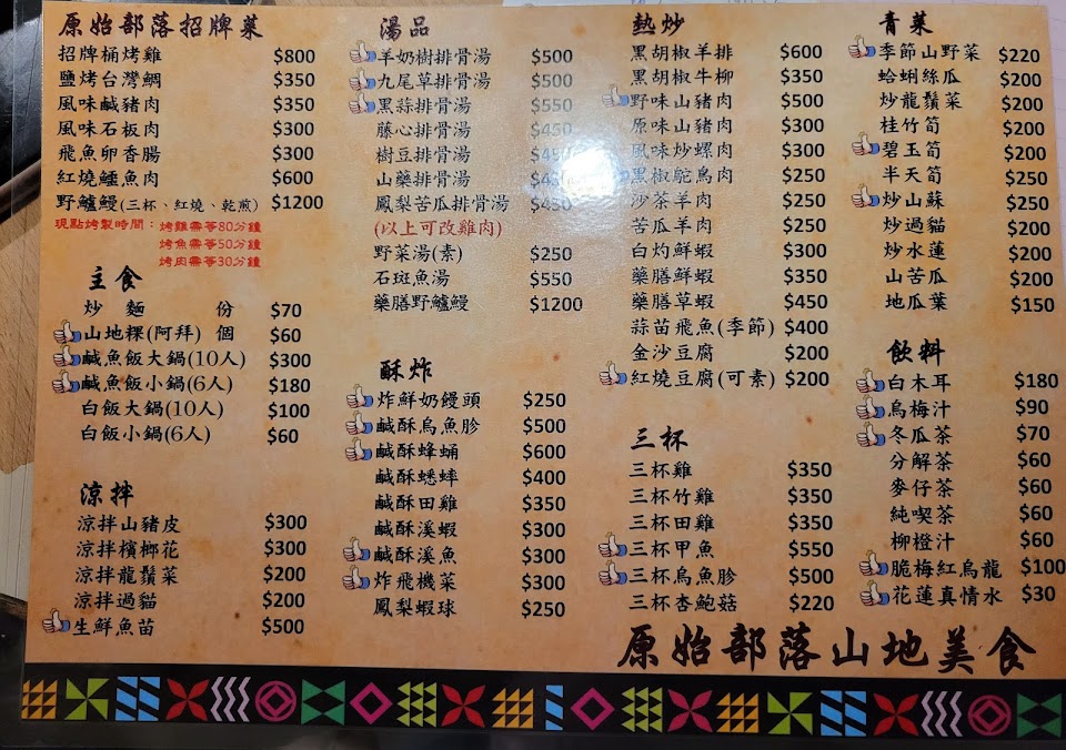 2024最新在地推薦餐廳的菜單_原始部落山地美食的菜單、圖片