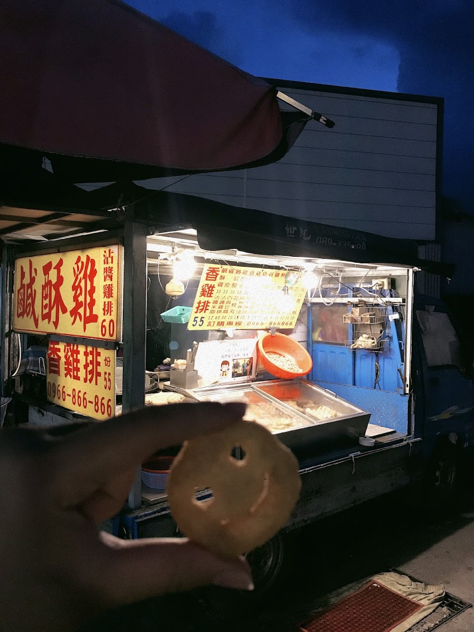 這家位在台東太平診所對面的鹹酥雞攤車開有20幾年以上了。平日下午也都有營業。這家做的炸魷魚很厲害。外面裹的麵粉加上新鮮魷魚塊,把魷魚塊炸的外酥內嫩非常好咬、很喜歡吃這家的炸魷魚、炸雞皮、鹹酥雞、甜不辣、米血都炸的酥脆好吃,炸物起鍋前會在放九層塔下去炸口感也很棒很古早味道地鹹酥雞味道。攤車旁邊也有賣手搖飲料種類多!綠豆沙、綠茶、檸檬汁都新鮮很好喝!每次我回台東老家ㄧ定都買一大包鹹酥雞回家吃!!太平CP值超高鹹酥雞攤便宜又好吃。