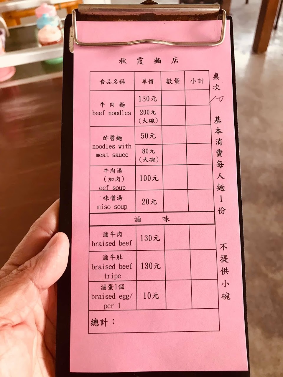 秋霞麵店 就只賣 牛肉麵 & 炸醬麵 滷味 也只有 滷蛋 & 滷牛肉 牛肚 營業時間 11:00 – 14:00
