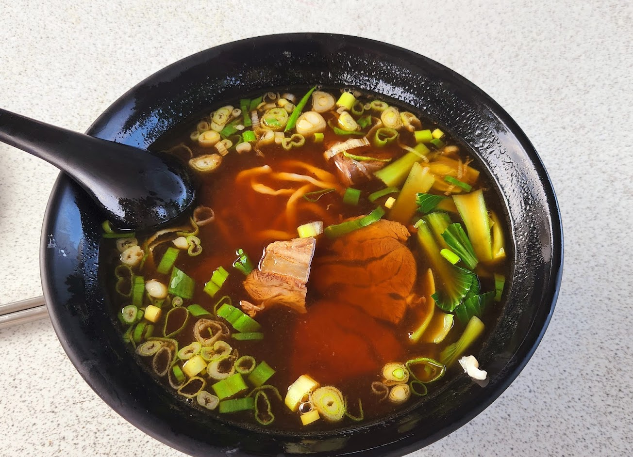 湯頭好喝、不油膩,牛肉軟嫩,麵條Q彈。