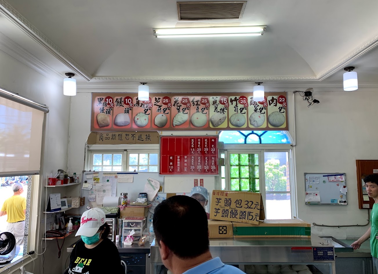 評論數雖然最高,不過表現沒有另一家巷子裡的優秀,包子外觀雖圓胖,但皮比較沒有口感。肉包沒不好吃也沒好吃,香味不足;芋泥包纖維異常多也乾,倒也不是想呈現芋泥塊,蠻失敗;竹筍包是竹筍切塊,不驚艷,另一家優秀許多;高麗菜包以經典菜色來說,真的表現不好,內餡不鹹不香;紅豆包倒意外很好吃,紅豆泥夠濕潤,算優秀,有加分到。總體來說,如果兩家只挑一家吃的話,比較建議另一家。