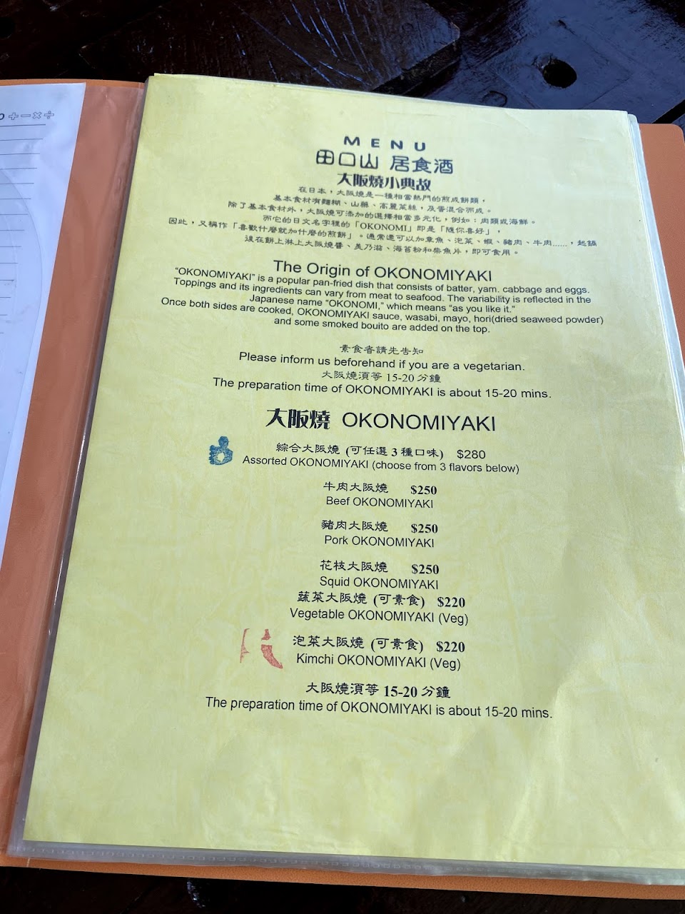 2024最新在地推薦餐廳的菜單_田口山 居食酒 大阪燒 無國籍的菜單、圖片