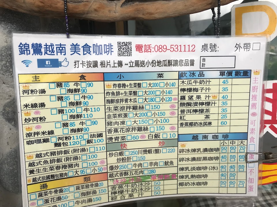 雖然寫到都蘭要吃啥都要列這家、就連民宿老闆也推薦,但我真的不懂為何來台東要吃”越南料理”?!我只能說CP值可以,但菜餚河粉湯頭不錯,其餘就真的還好,除非你真的在意分量,就口味上來說,我覺得沒有特別驚喜~飲料羅望汁可以嚐嚐。