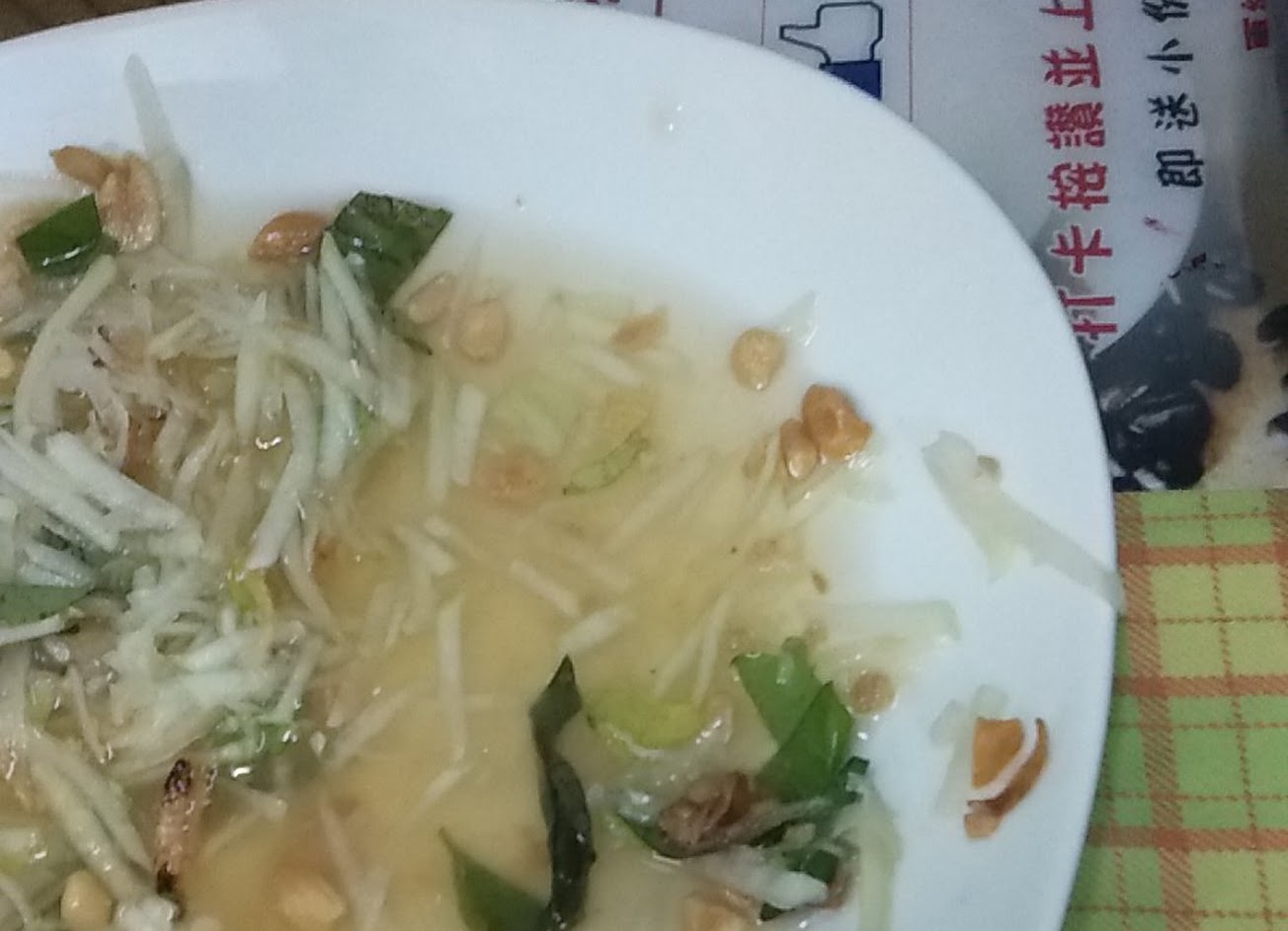 1.價格便宜,物超所值的異國料理 2.與坊間東南亞料理相比,該店所販賣的種類少很多。 3.麻雀雖小,五臟俱全。種類雖少,但各個都有到位,無論是從口味、室內裝潢等等,都是無可挑剔的! 4.店內擺設蠻具當地特色的,內部所販賣的商品為當地喜愛的藝品,ex,玉鐲等物品、廁所外也有擺設一個當地明星的日曆,在物以稀為貴的時代下,還頗新奇的! 5.來店必點:蔬菜牛骨湯,在一碗售價僅20元,且非常大碗的前提下,非常的物超所值。碗已經不小了,裡面承裝的料更是滿出來,曾一度懷疑現在物價有那麼低嗎?