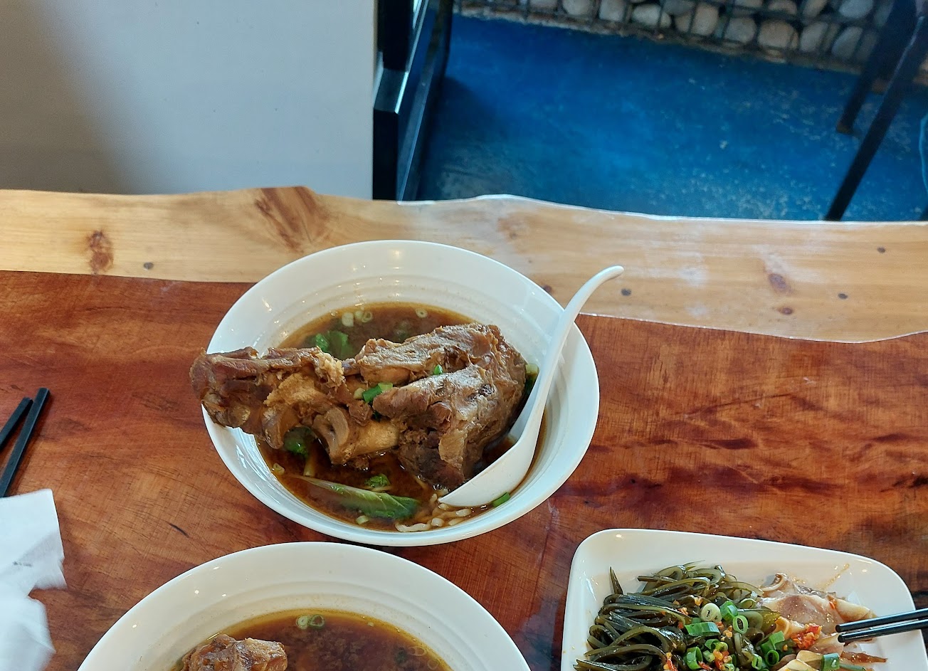 大骨麵中的帶肉大骨很有特色, 肉質軟嫩好吃, 如果可以切斷好讓人吸骨髓的話會不會更好, 湯頭就比較偏淡, 這點屬於自己的口感, 整體上算蠻不錯吃的。 可以免費加湯。 店面的擺設 桌椅也都很有特色。 服務 內用 餐點類型 午餐 平均每人消費金額 $200-400 餐點:4 服務:4 氣氛:5 建議的餐點 大骨麵骨頭 特殊餐點 很大一支的大骨拿起來啃很特別