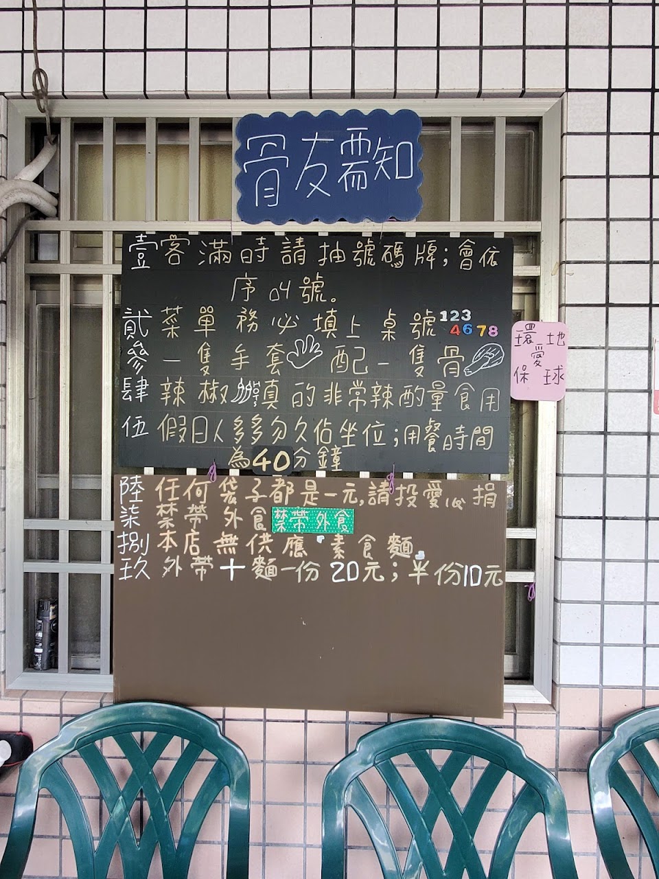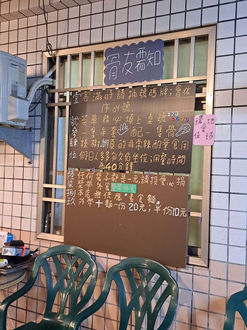 在巷子裡的一間店開車前往的,附近不好停車需繞一下外面提前停好車走路進去,假日人很多需久候,等到最後也許會沒大骨只剩湯麵,麵Q、滷味都好吃,尤其店內的辣椒必蘸,大推辣椒。 服務 內用 餐點類型 午餐 平均每人消費金額 $200-400 建議的餐點 大骨麺 魯味 自切滷味